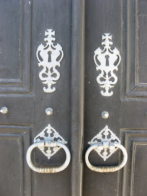 Mafra - Rua do Mercado - par de batentes e espelhos de fechaduraUm blogue para mostrar como simples acessórios servem para embelezar uma porta. A blog to show the beauty of door knockers and locks. Un Blogue to montrer la beauté des acessories et la beauté des portes.